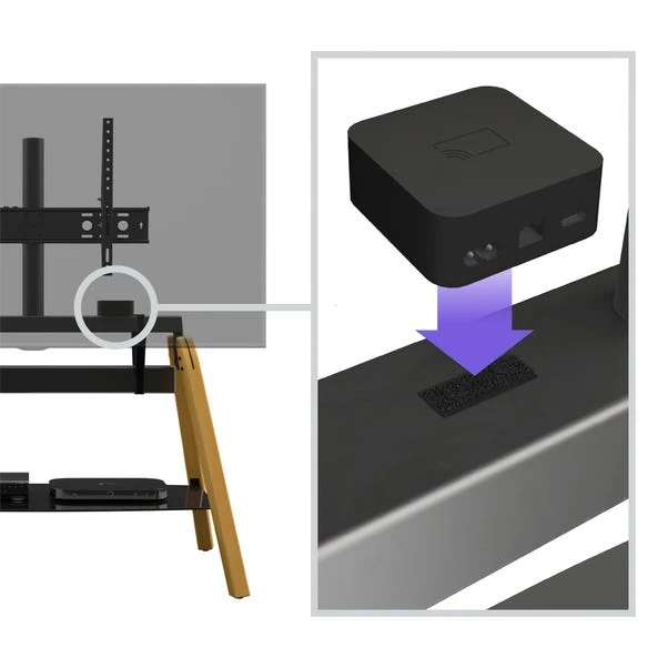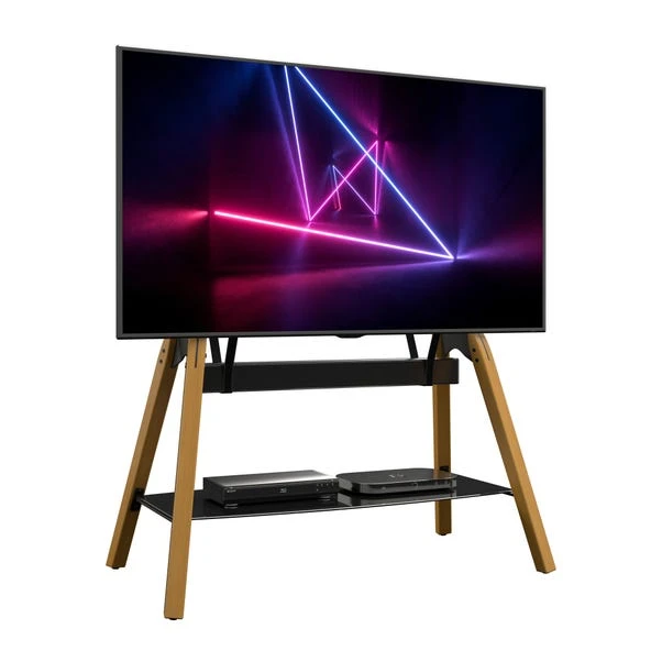 A modern TV stand with serious presence, the Hoxton quad supports screens from 32″ to 86″ (up to 50kg). With height adjustment and 15° tilt, it’s easy to find the perfect viewing setup. A built-in strap allows you to suspend your soundbar neatly under the screen, while a discreet shelf and cable clips keep your space organised.