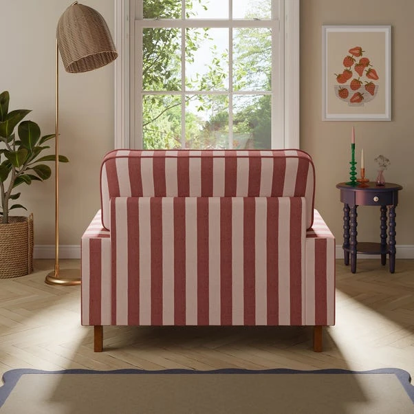 Looking for a snuggle chair that adds a pop of personality to your space? Look no further than this snuggle chair. With its 1-seat design, fixed back, square arms, and stylish cotton blend fabric, it’s a statement piece that’s as comfortable as it is eye-catching. The two-tone stripe pattern adds a touch of texture and charm, while the foam and fibre-filled cushioning provide a cosy seat you’ll love sinking into.