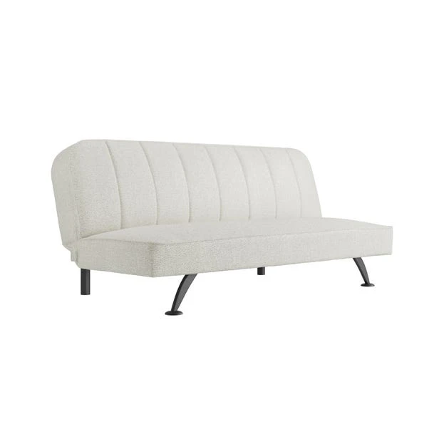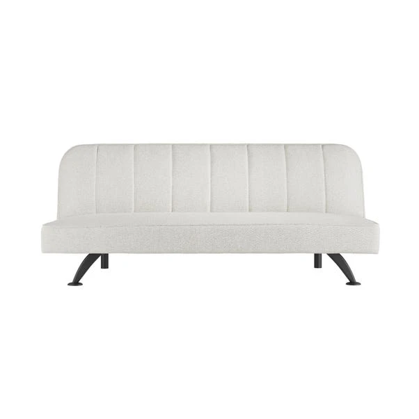 The Burlington Boucle 2 Seater Sofa Bed features a contemporary design with soft-to-touch ivory boucle fabric and matte black legs. This versatile click-clack sofa bed can be used in any room.