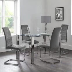Add the finishing touch to your dining room with this set of 4 dining chairs. The Calabria dining chair is upholstered in a velvet fabric and paired with chrome plated cantilever frames for a striking look that both you and your guests will love.