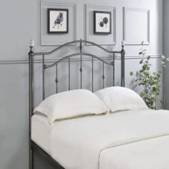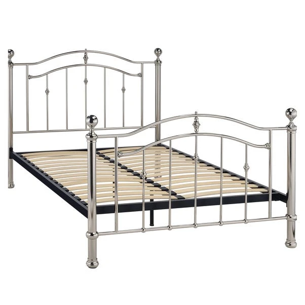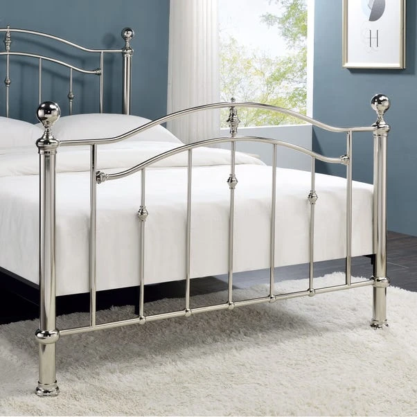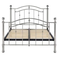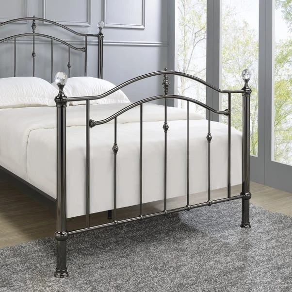 An elegant metal bed frame with a striking chrome finish and crystal finials. Available in different sizes.