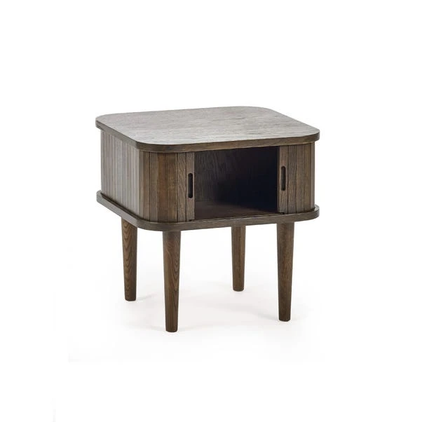 Small in size but big on style, this side table makes a sleek addition to any living room or bedroom. Its dark oak-effect finish adds a touch of warmth, while the tambour door conceals a useful little storage nook. Ideal for placing beside a sofa or as a compact bedside table, its minimal design and practical storage make it a versatile piece.