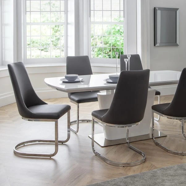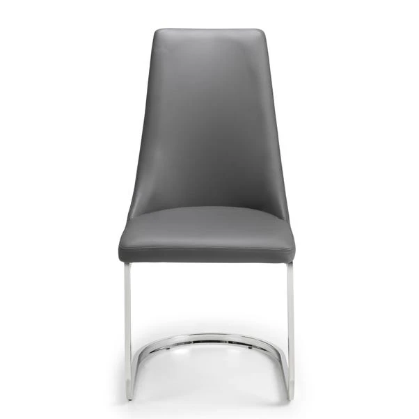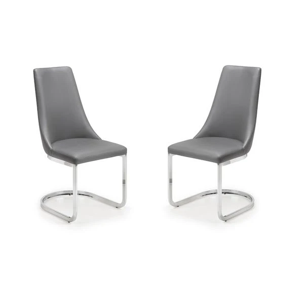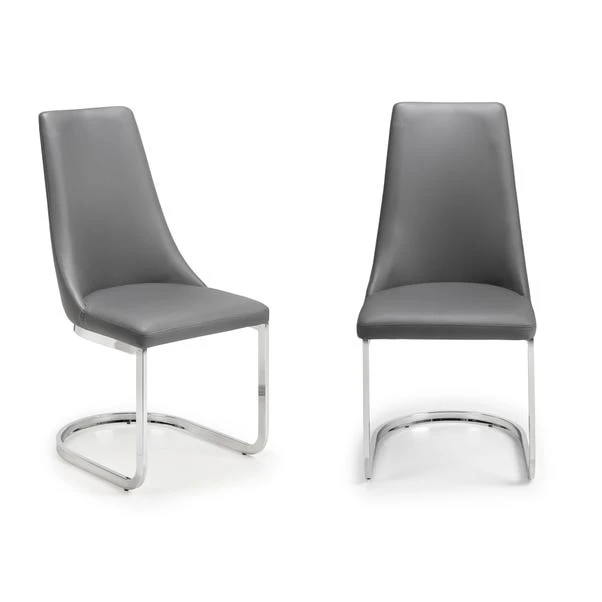 Upholstered in a grey faux leather with comfortable padding, the Como Cantilever dining chair offers luxurious comfort. Featuring a chrome, cantilever base, this chair will bring a touch of class and sophistication to any dining room décor.