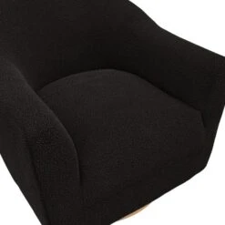 The Daphne Boucle Swivel Chair features a wood-effect base and black textured upholstery, complemented by a versatile swivel function. Its curved shape makes it a perfect addition to both bedrooms and living rooms.