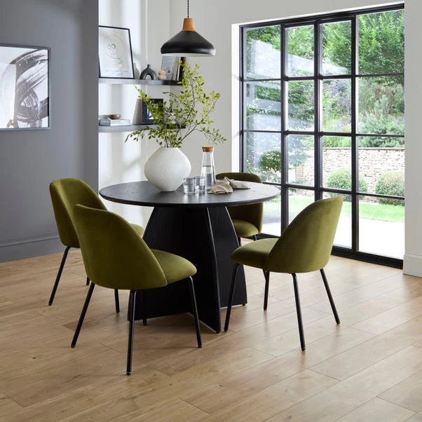 A stylish choice for any dining space, this chair combines a timeless silhouette with the soft, tactile appeal of velvet upholstery. The gently curved backrest and padded seat provide a comfortable sitting experience, while the sturdy frame ensures durability for everyday use.