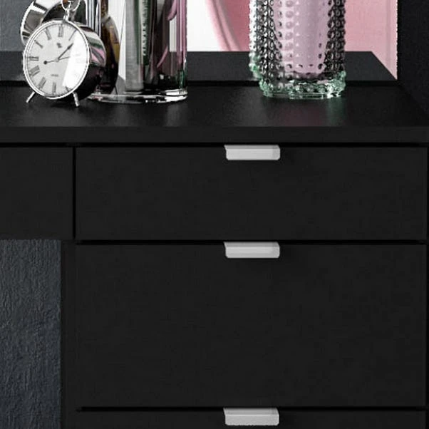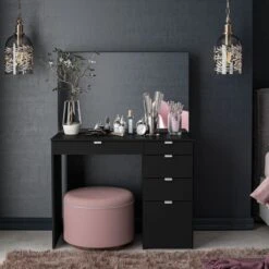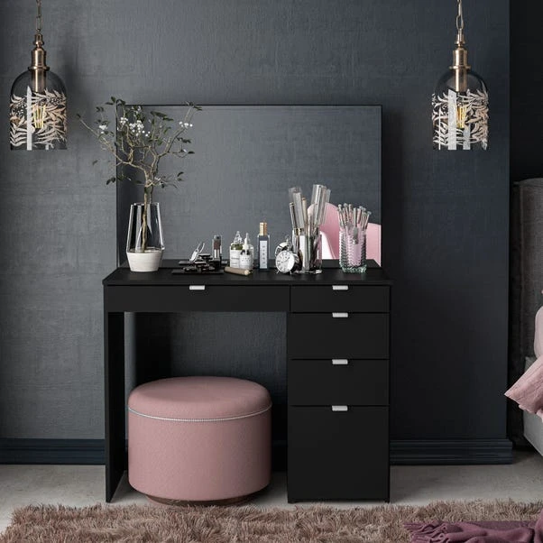 Get ready to feel like a Hollywood starlet with the Demi 5 Drawer Dressing Table & Mirror. With its sleek black design and 5 drawers for all your beauty essentials, you’ll be ready for your close-up in no time. And the best part? No paparazzi will be hiding in the drawers. Cleaning is a breeze too – just wipe with a dry cloth and you’re good to go!