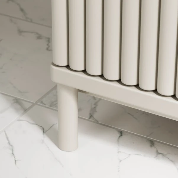 Combining style and practicality, the Elsie Single Vanity Unit features soft-closing doors, shelving for organised storage, and ribbed detailing for a refined look. The gold handles add a polished touch, making this piece a standout addition to any bathroom.