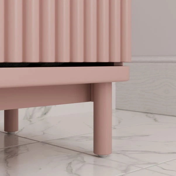 Featuring soft-closing doors and hinges for quiet and safe operation, this cabinet showcases a matte painted finish and a modern fluted texture front, exuding modern glam charm. Its metal leg base, hexagonal handles, and adjustable internal shelves provide ample storage, while the open storage space adds a unique touch to your bathroom decor.