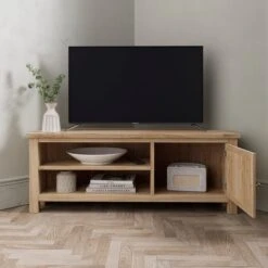 Not only will this unit hold your TV, but it also has a lot of extra storage space. The doors have a slatted design which can help create depth in your living room. Full assembly is required, but do not worry! Assembly is easy and all the tools you will need are supplied. Coordinating furniture pieces are available in the Englewood range.