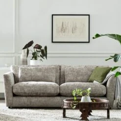 Upholstered in a soft yet hardwearing chenille fabric, the Esther 3 Seater sofa offers a timeless design, perfectly suited to any home décor styles available in a choice of trendy mink and charcoal colourways. Providing unmatched comfort, the Esther boasts plump, fibre filled seat cushions and a sprung base, as well as a fibre filled backrest, complete with additional bolster cushions for added support.