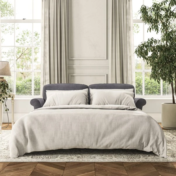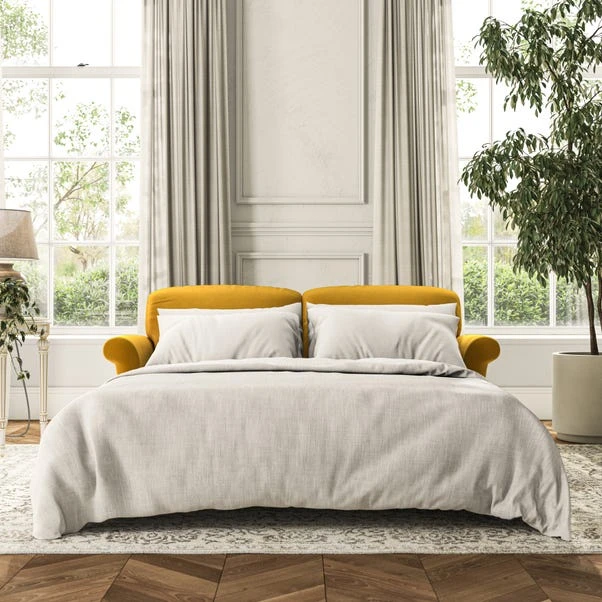 The Evie 2 Seater Sofa Bed combines style with practicality, making it a versatile choice for any home. With its elegant slender scroll arms and neat lugged seat cushions, it offers a refined look, while the hidden sofa bed provides a convenient sleeping solution for guests. The fibre-filled back cushions offer supportive comfort for everyday seating, and the sofa bed mechanism is easy to use when needed. Customise it with your preferred fabric, colour, cushion filling, and leg finish.