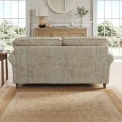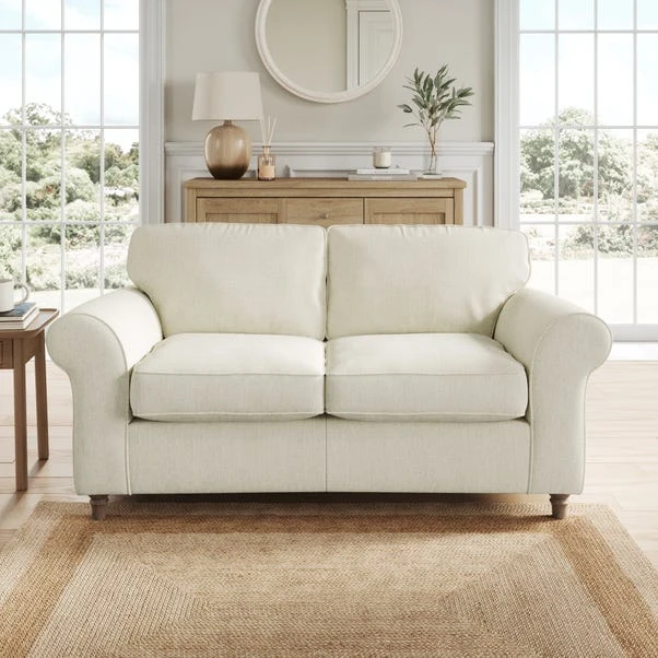With its gracefully curved arms and sturdy wooden feet, this sofa exudes timeless charm that effortlessly enhances any living space. Available in a palette of rich tones, the chunky chenille upholstery is adorned with tasteful piping detail, lending a touch of refinement. Enhanced with newly filled foam cushions, it ensures exceptional comfort and lasting support.