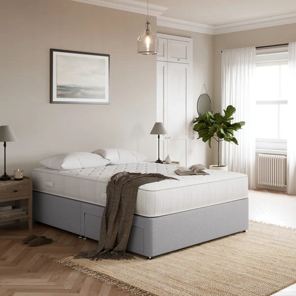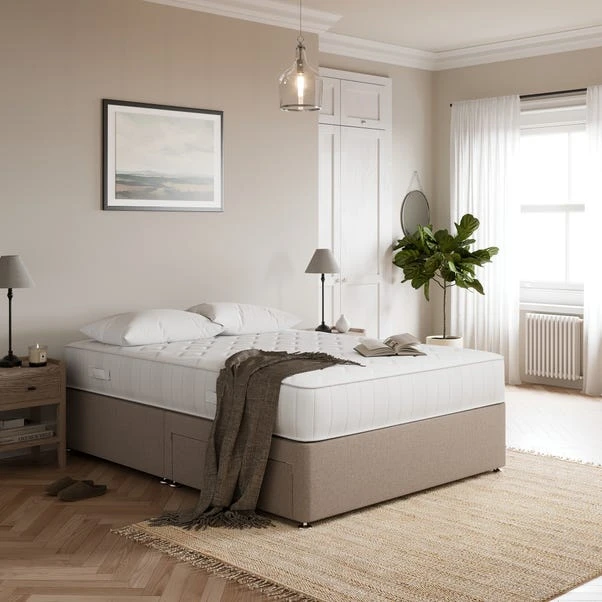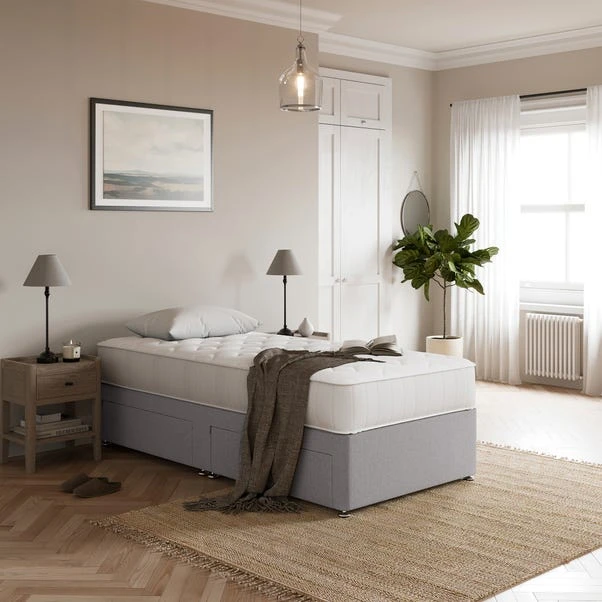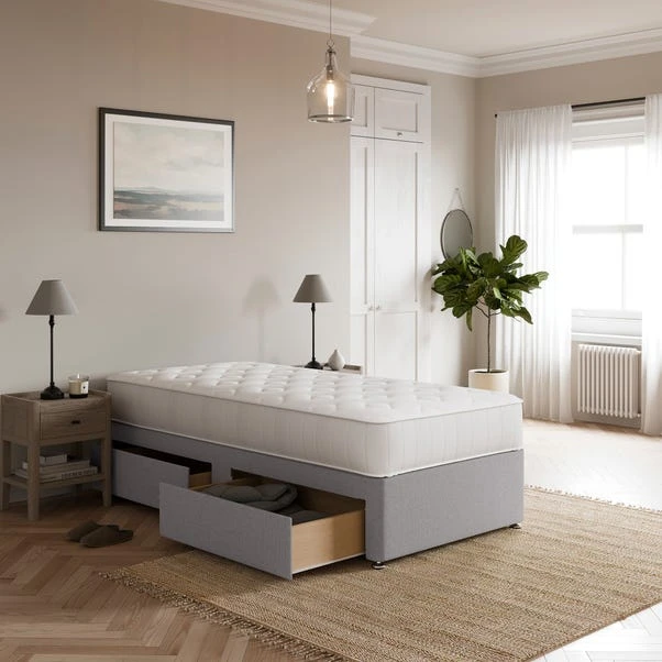 This divan set features a platform top base designed to provide extra support, with non-slip material ensuring the mattress stays securely in place. Crafted from high-quality softwood and hardwood, the divan set is built to last. The medium support mattress includes a layer of memory foam that molds to your body’s shape for personalised comfort. Practical handles and vents on the mattress make moving and maintenance effortless. Available in a variety of colors to complement any bedroom decor, the set includes a discreet 2-drawer storage area for organising your essentials. Please note that the headboard is not included, allowing you to customise your bed to your own taste.