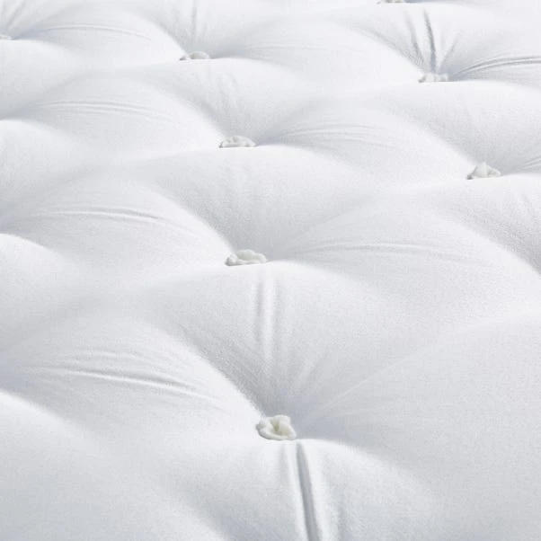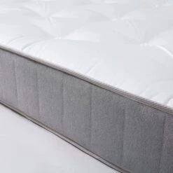 Our Fogarty extra comfort mattress contains an eco-flex layer which is both protective to the mattress and comfortable for you to lay on – it surrounds the springs to provide extra padding. Eco-flex is a repurposed layer made from recycled textile & clothing fibres making it kinder for the planet. A wire frame wrapped in a quilted boarder gives you edge-to-edge support for a wider sleeping area and the hand tufted finish helps to keep the mattress filling in place to prolong the mattresses life and ensure even & consistent support. This mattress is finished with a hypoallergenic cover, perfect for helping to reduce any of your allergy triggers.