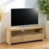 Inspired by contemporary and simplistic styling the Fulton range is a perfect statement piece to any living space. Made from durable materials with a metal tube base and unique matt finish, this self-assembly range features a rustic pine-effect finish with complementing black handles.