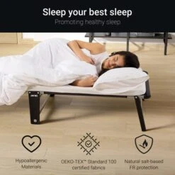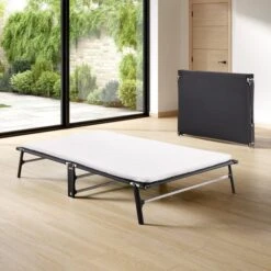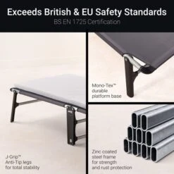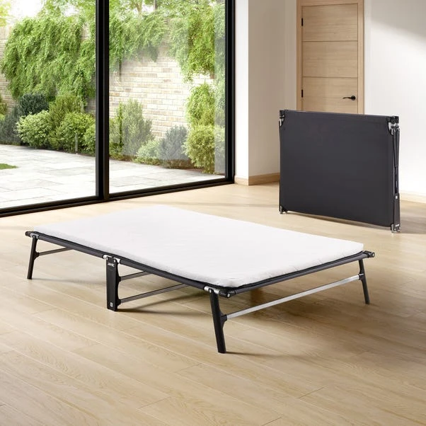 The Jay-Be Compact Folding Bed offers extra sleeping space, making it ideal for two people. Designed for portability and versatility, it features robust legs with a 6-point sleeping foundation for stability. The zinc-coated frame ensures strength and rust protection, while the e-Fibre mattress provides comfort and support. Built to last, this bed comes with a lifetime frame guarantee for long-term durability.