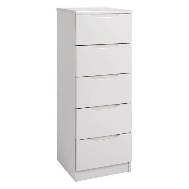 Featuring a sleek handle-less design this five drawer chest of drawers is finished with a high gloss. The Legato 5 Drawer Tall Chest of Drawers Narrow Chest features a contemporary style with a unique handle-less design and a high gloss finish. Constructed from high quality components this five drawer chest makes for a practical and stylish storage solution for your bedroom.