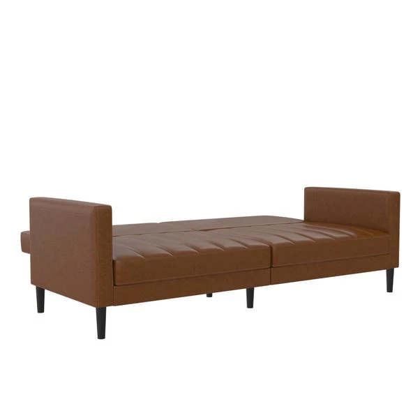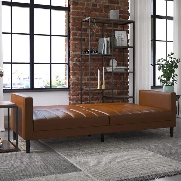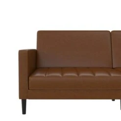 This is the sofa to put your feet up on and lean back. With multi-position split-back design, you can sit, lounge or even sleep! This durable faux leather sofa features solid wood legs and is perfect for any office, spare room or living room.