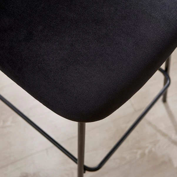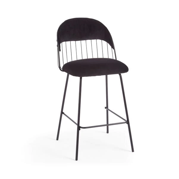 This stunning bar stool combines comfort and style, making it the perfect addition to any contemporary interior. The foam-filled cushions provide exceptional seating comfort, allowing you to relax and enjoy your favourite beverages or meals in utmost comfort. The soft upholstered black velvet adds a touch of elegance and sophistication to your space, creating a chic and inviting atmosphere. The curved back seat not only offers excellent lumbar support but also adds a modern flair to the overall design. Supported by sturdy metal legs, this bar stool ensures stability and durability, making it a long-lasting investment.