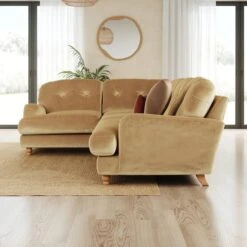 Wrapped in luxurious vintage velvet, this sofa embodies understated opulence, inviting you to sink into its plush cushions and unwind in style. With its full corner design, it provides ample seating space for gatherings or moments of relaxation. The classic silhouette and rich texture add a touch of sophistication to any living space.