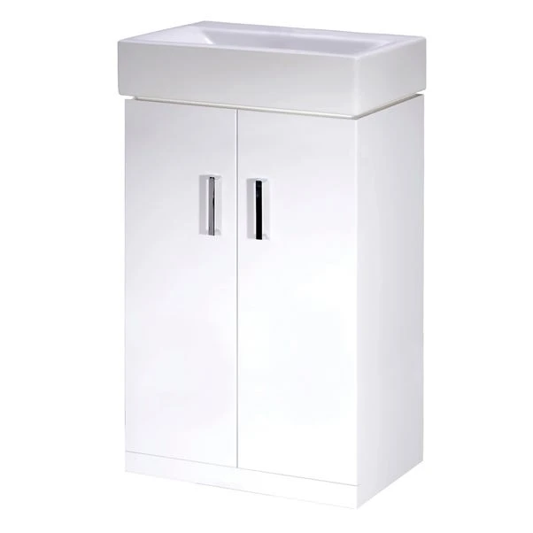 The Mayford 2 Door Vanity Unit with Basin is a high-gloss contemporary unit designed for smaller spaces. Its ceramic basin and chrome handles give it a refined look, while the soft-closing mechanism ensures quiet and smooth operation. With adjustable shelves and a high-quality gloss finish, it’s both practical and stylish.