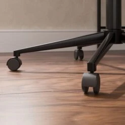Add effortless retro style to your home office with this Modena Office Chair. Finished in a walnut wood effect with black swivel base, the seat and back is upholstered in chic black faux leather and foam filled for a comfortable seated position. The seat height is adjustable between 44-53cm, giving full flexibility for you to adapt it to suit your furniture and stature. The castor wheels make moving around simple. This chair is both functional and great to look at, and would be an excellent addition to your workspace.
