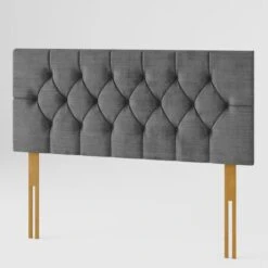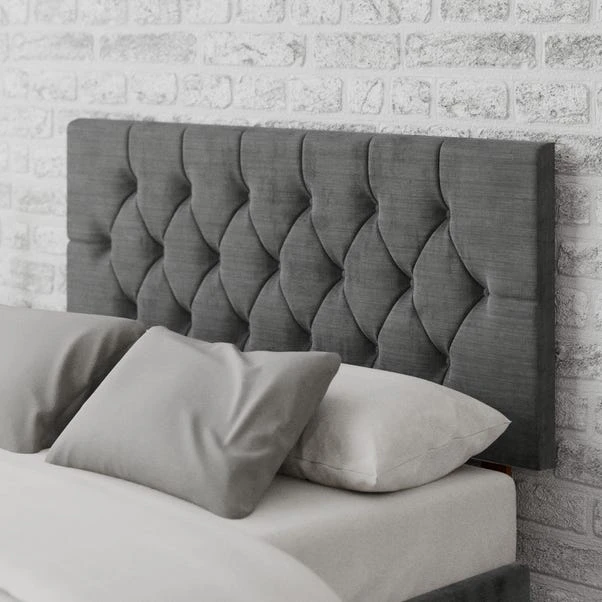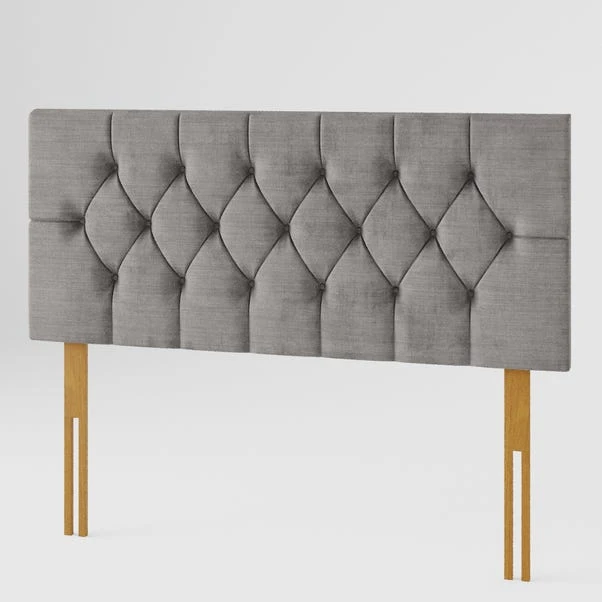 Create a statement look in your bedroom with this striking headboard from the Olivier range, offering a comfortable and relaxing recline while refreshing your space. Showcasing a decorative look, this headboard is hand upholstered in a velour fabric with timeless deep buttoned design details and deep padding for added comfort. Handcrafted with a 15mm thick panel and with solid mahogany struts ensure your headboard is sturdy and long lasting for years to come and the deep polyester padding will add a comfortable and supported surface. Available from single to super king sizes, this headboard is suitable for all standard bed bases making it a convenient and simple upgrade to your existing bed frame and a range of contemporary colours make it a versatile choice for various bedroom aesthetics.