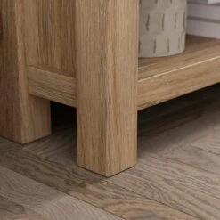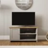 Get the perfect look for your living room with this stylish TV unit. With its oak effect finish, brushed metal brass handles and shelf and cupboard storage, you have everything you need to make entertaining a breeze.