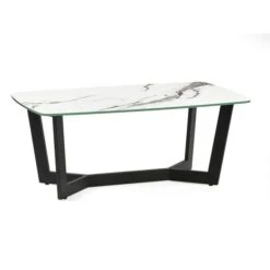 Whether serving as a focal point in your living room or complementing existing furniture, this coffee table adds an air of timeless elegance to your home decor. With its sleek black frame and luxurious marble-inspired top, this coffee table is a statement piece that elevates any living space. Crafted with meticulous attention to detail, it exudes sophistication and modernity while offering practicality for everyday use.