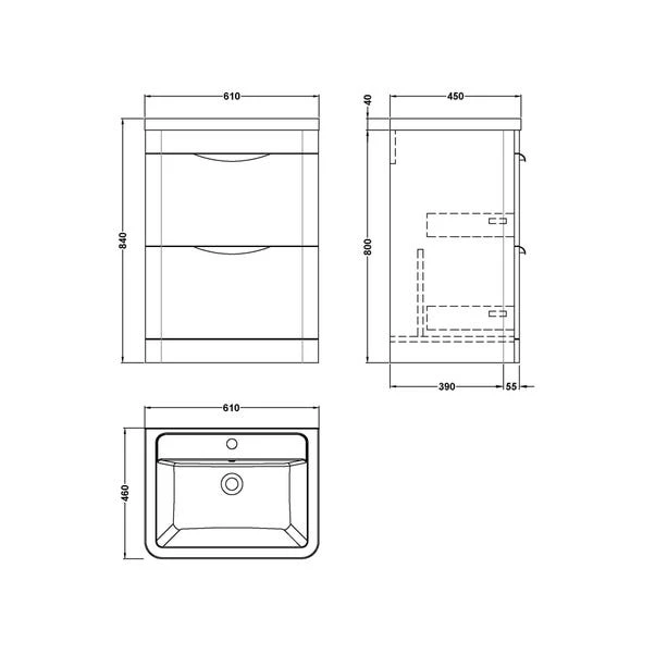 60cm Vanity Unit: H 84cm x W 60.7cm x D 45cm