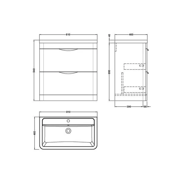 80cm Vanity Unit: H 84cm x W 80.7cm x D 45cm