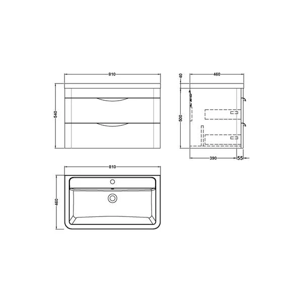 80cm Vanity Unit: H 54cm x W 80.7cm x D 45cm