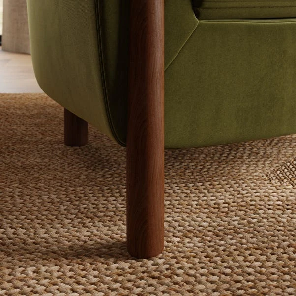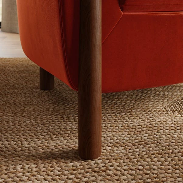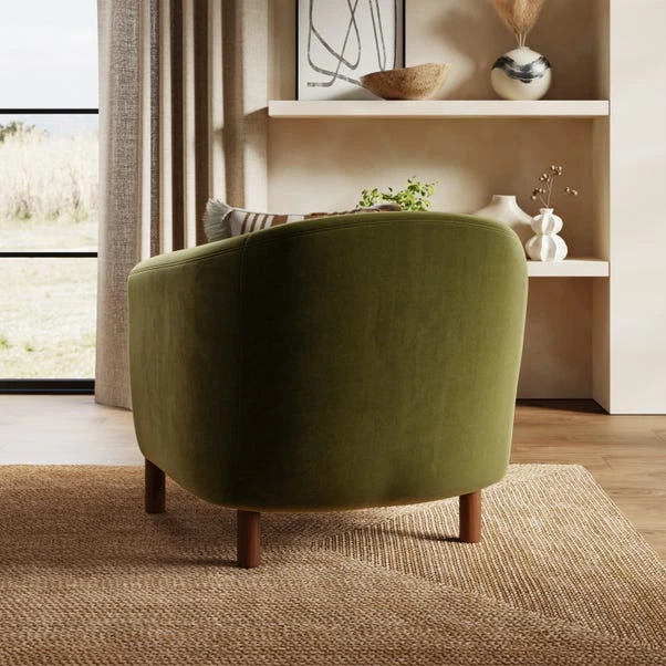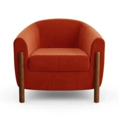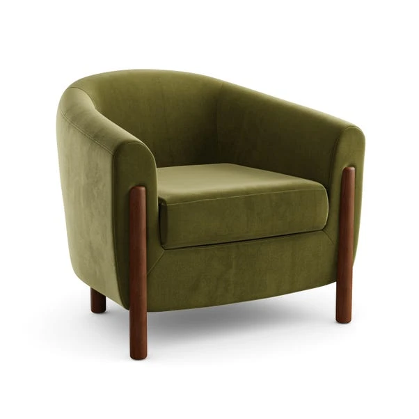 This statement piece combines timeless elegance with modern comfort, featuring plush velvet upholstery that radiates warmth and luxury. The curved tub design offers excellent support, while the sturdy wooden legs ensure durability and a natural aesthetic.