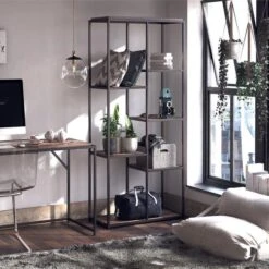 Who needs a basic bookcase when you can have the extraordinary Quincy 5 Shelf Bookcase? With its asymmetrical look, this bookcase offers a unique way to express your personality and display your fabulous memories and books. The woodgrain finish on the laminated particleboard paired with the sturdy metal frame creates a fierce and coordinated look for your entire room. Plus, a wall anchor kit is included for added safety.