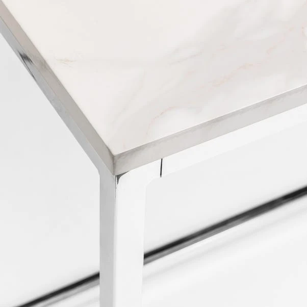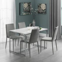 Meet Scala, a sharp, sleek and sophisticated dining table that’ll be the talking point at every dinner party. Made from marble-effect top over a gold-chrome plated steel frame. It seats 4 people comfortably, perfect for smaller households.