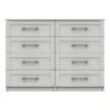 Offering a modern twist on a timeless design, the Vermount 5 drawer chest would make a great addition to any bedroom. This self-assembly chest of drawers offers ample storage space and is finished with gorgeous distressed, gradient drawer fronts and vintage style ring pull handles.
