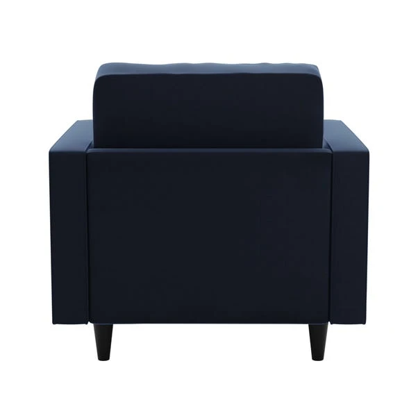 Bring some modern retro styling to your living room with the stylish Zoe Armchair. Available in a choice of bright and trendy colours, this chair features soft touch velvet upholstery, styled with a gorgeous tufted seat cushion, piped edge detailing and stylish tapered solid wood legs. As stylish as it is comfortable, the Zoe is the perfect place to sit back and unwind, featuring a foam filled, sprung seat and fibre filled back cushions. Made with recycled materials. This armchair has a non-reversible back cushion and a fixed